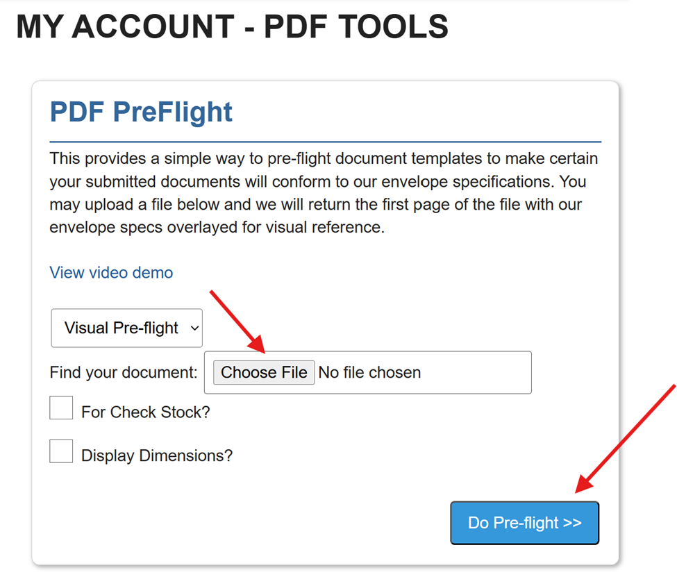 2. Once you’re in PDF PreFlight tools go to the PDF PreFlight section and click on Choose File then Do Pre-flight. Your document will now be uploaded.